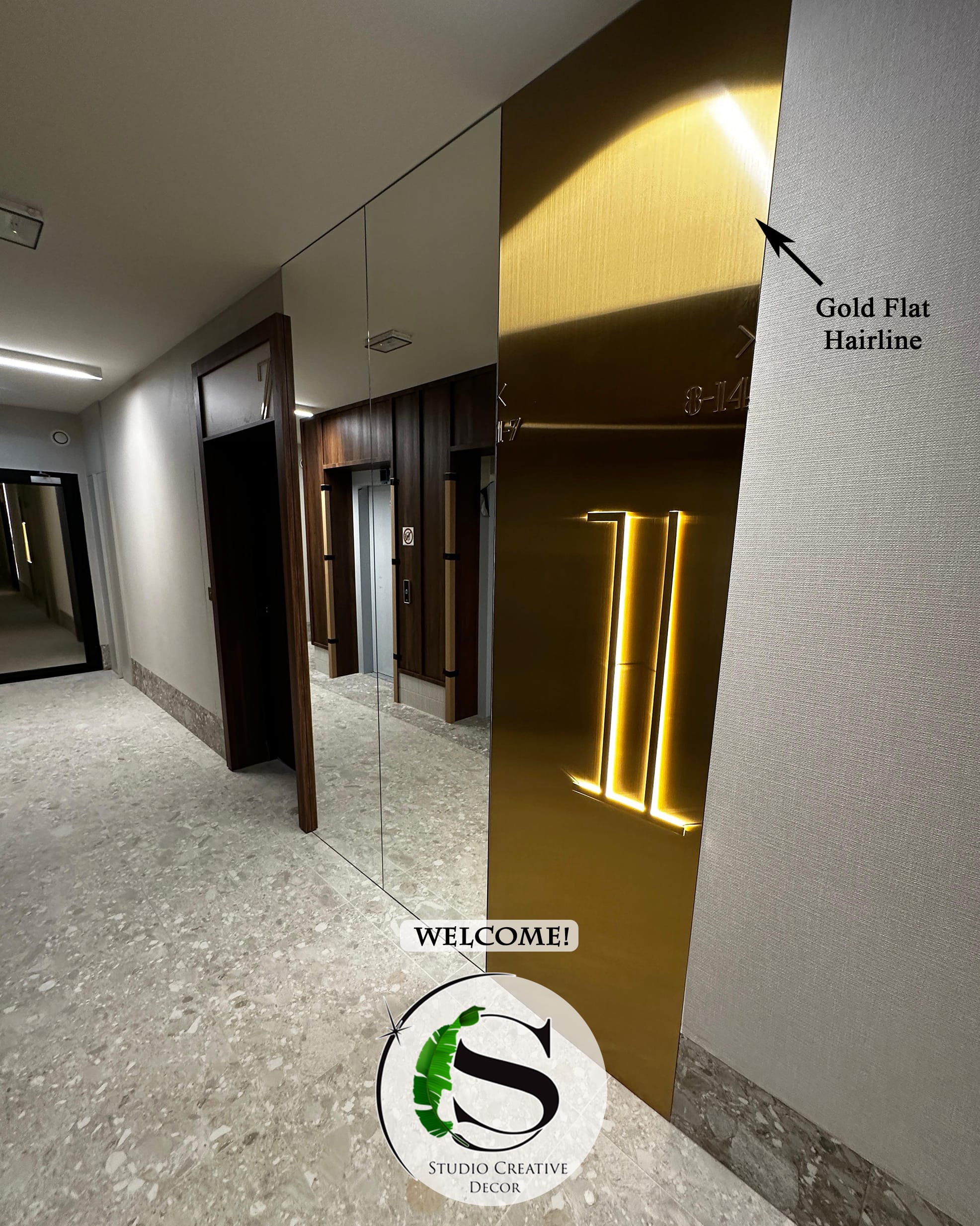 Panel dekoracyjny ze stali nierdzewnej płaski szczotkowany – GOLD FLAT HAIRLINE